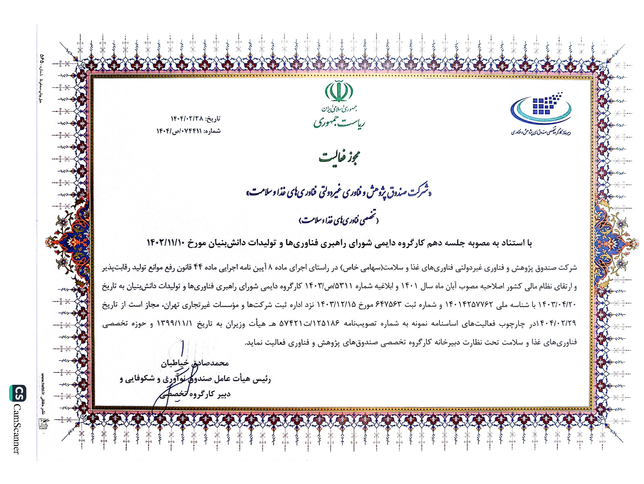 صندوق پژوهش و فناوری غیردولتی فناوریهای غذا و سلامت با اتکا به استانداردهای ملی و بینالمللی و اخذ گواهینامههای معتبر، همواره متعهد به ارائه خدمات شفاف و قابل اعتماد بوده است. این گواهینامهها نشاندهنده تلاش ما در ارتقاء کیفیت و رعایت بالاترین اصول حرفهای در حوزه مالی و حمایت از نوآوری است.